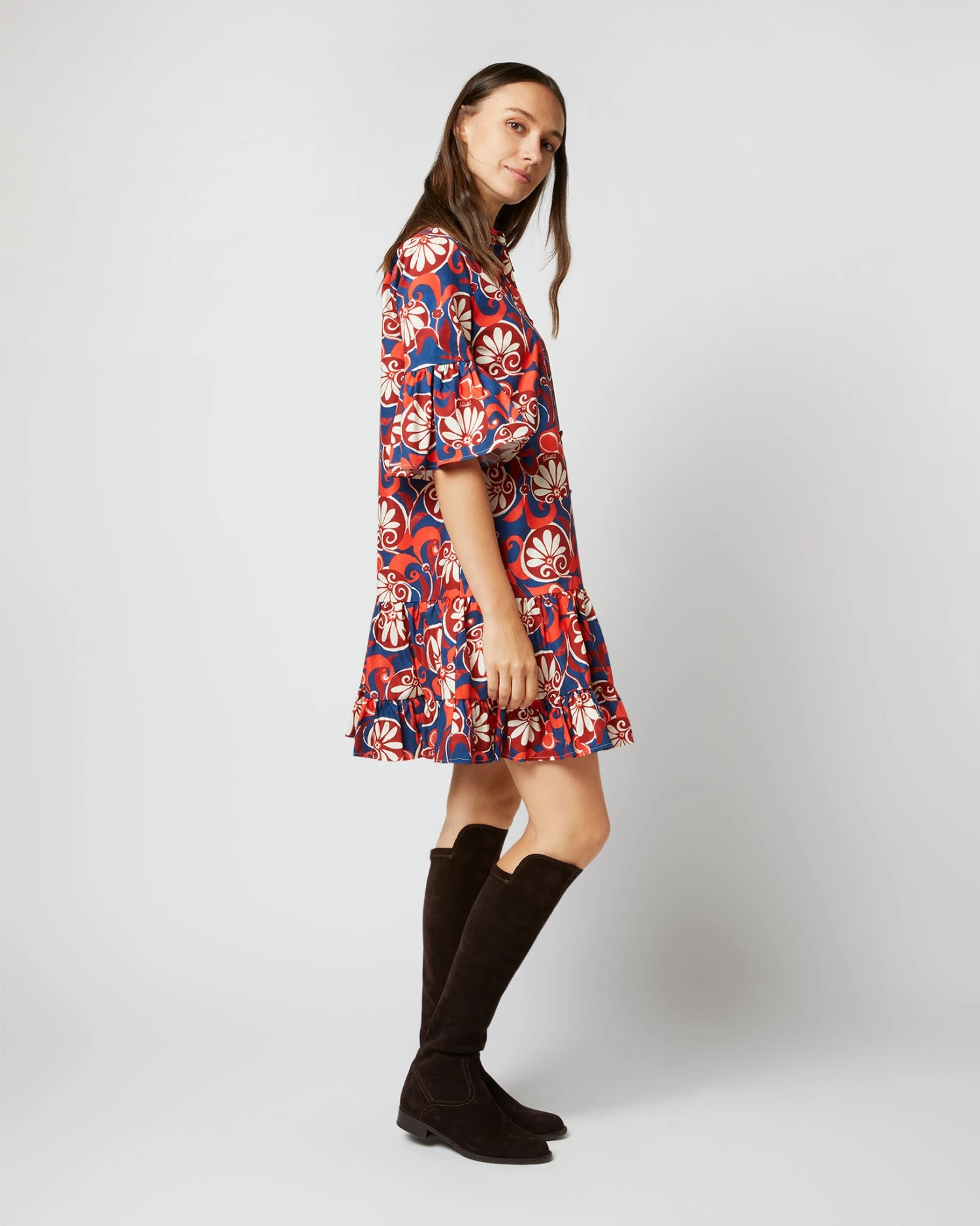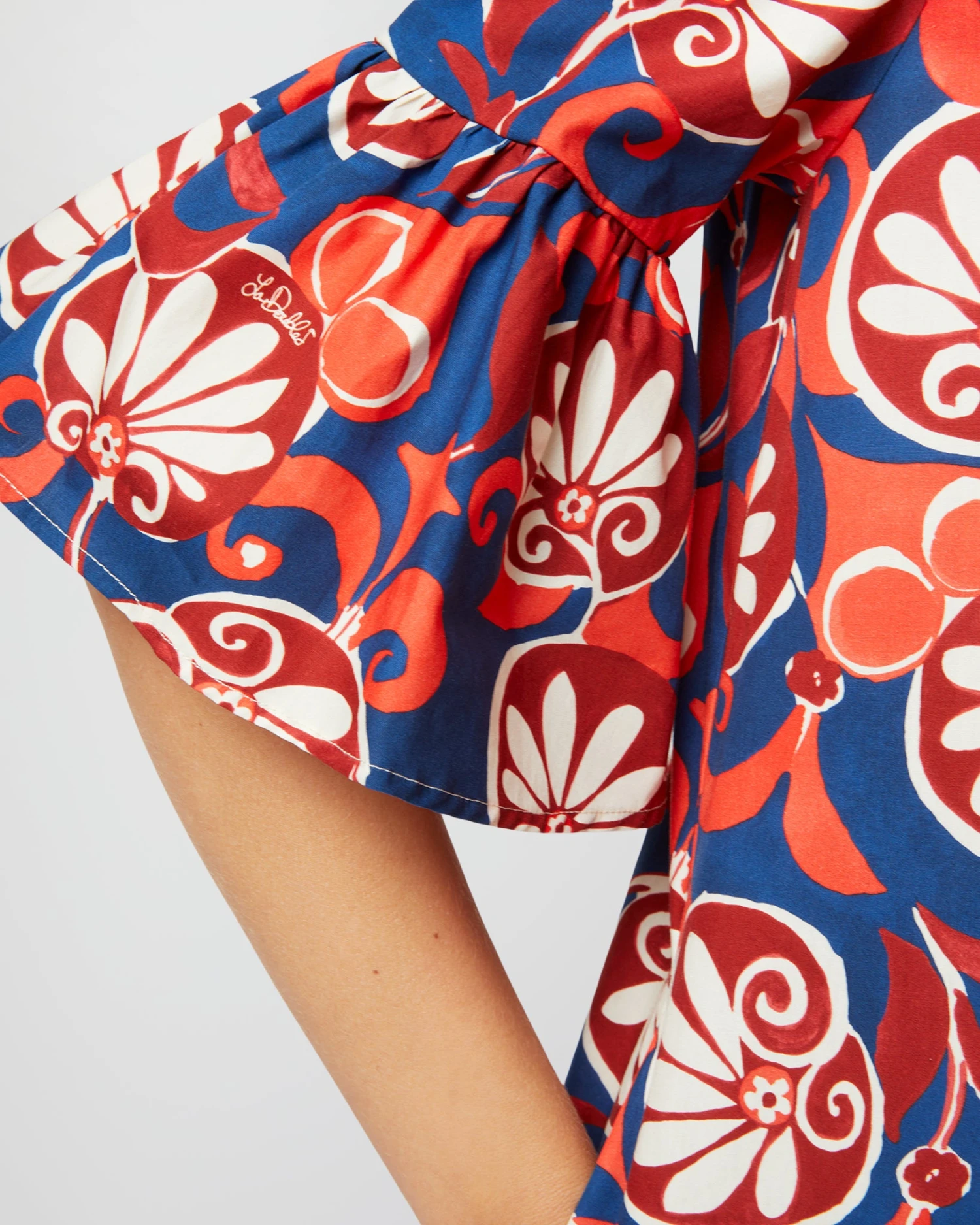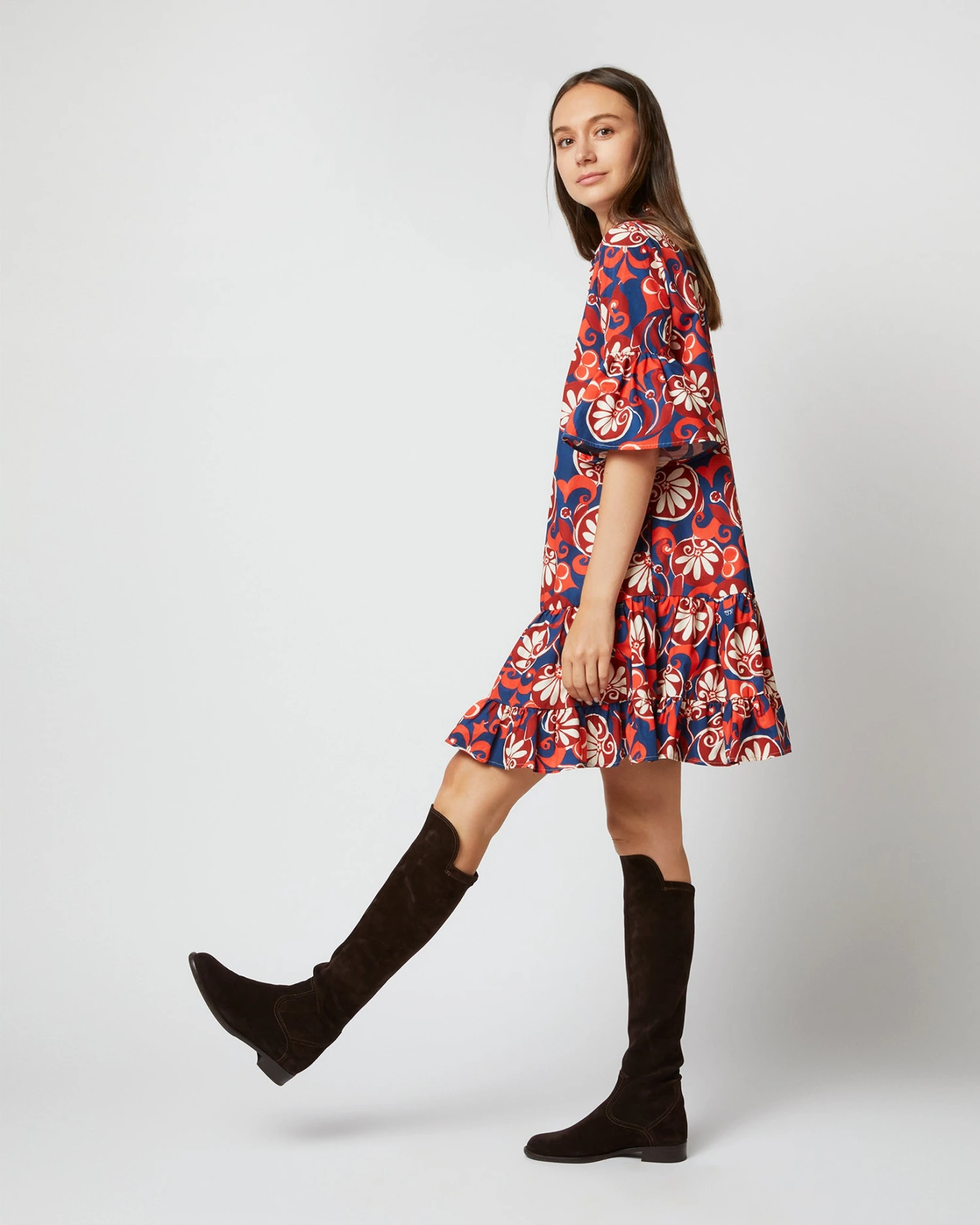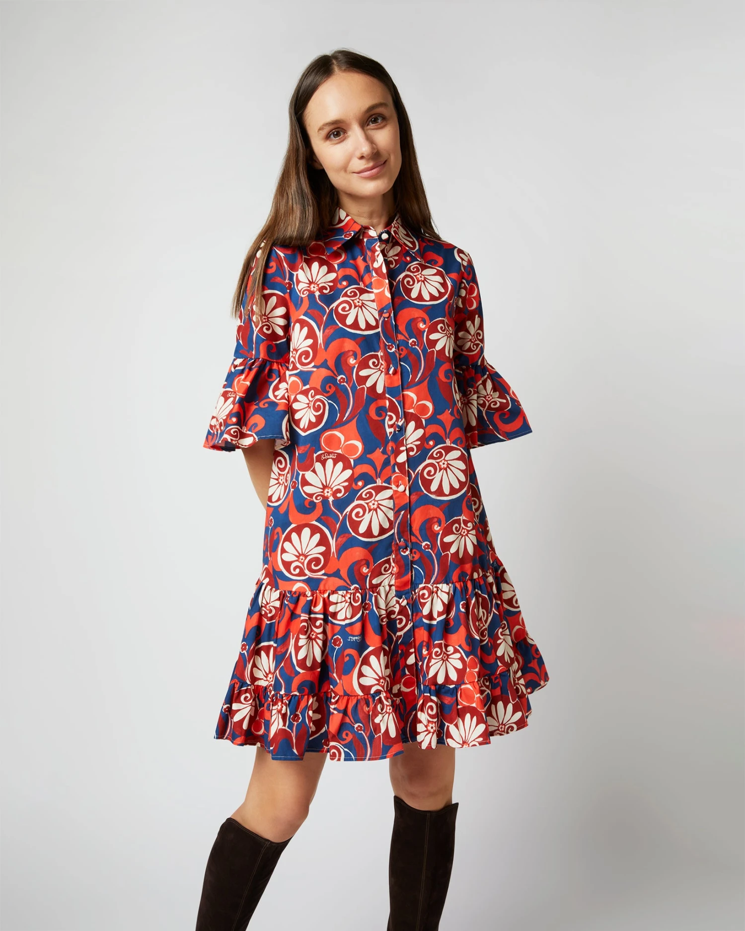Milan-based La DoubleJ makes party-ready skirts and dresses in reissued vintage fabrics, “distilled through a lens of pure joy, eye-popping print and love of all things maximal.” Sounds about right! The Choux Dress has fluted three-quarter sleeves, a pointed collar, and a tiered skirt. This one is made from a lightweight Italian cotton — a little lighter and crisper than its other iterations — with a retro-feeling floral print.