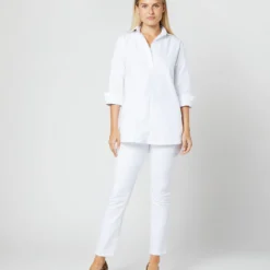 We’ve been running this minimal tunic since day one, in part because it looks so good on so many people — a slightly flared shape and a wide, no-button placket make it especially good for those with a fuller bust and the hem hits midthigh for a little more coverage. The fabric of this one is beautiful, too. We’ve long used an around-the-office portmanteau for it (royal + oxford = roxford,) since it’s lighter and dressier than a traditional oxford, with a more defined texture and a slight glow to the surface. It’s just an incredibly versatile shirt.