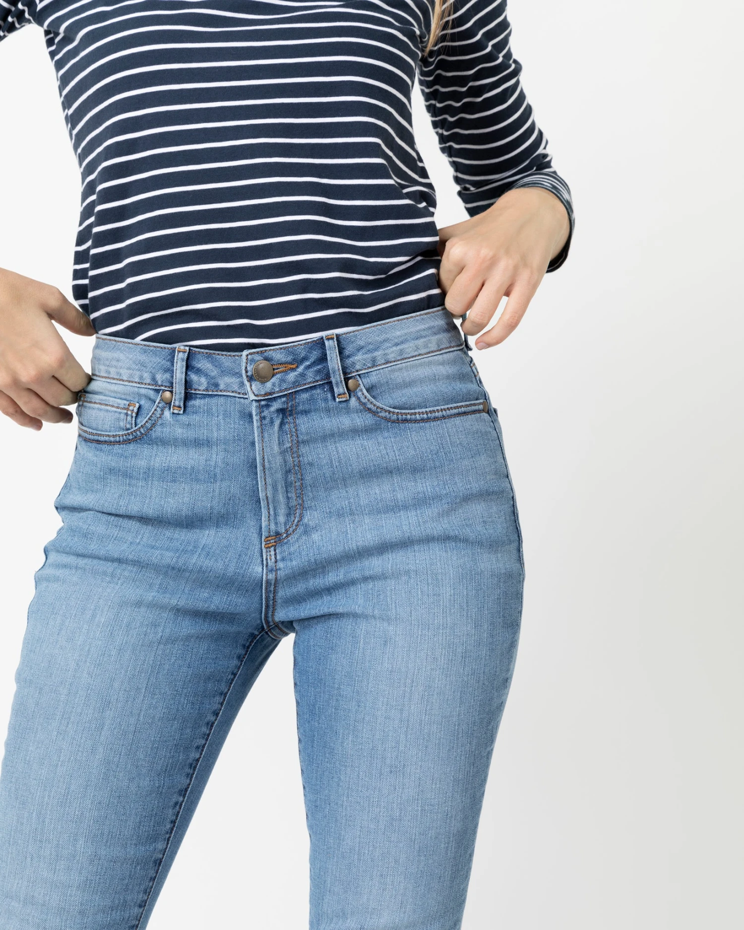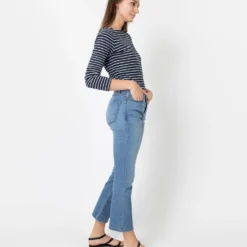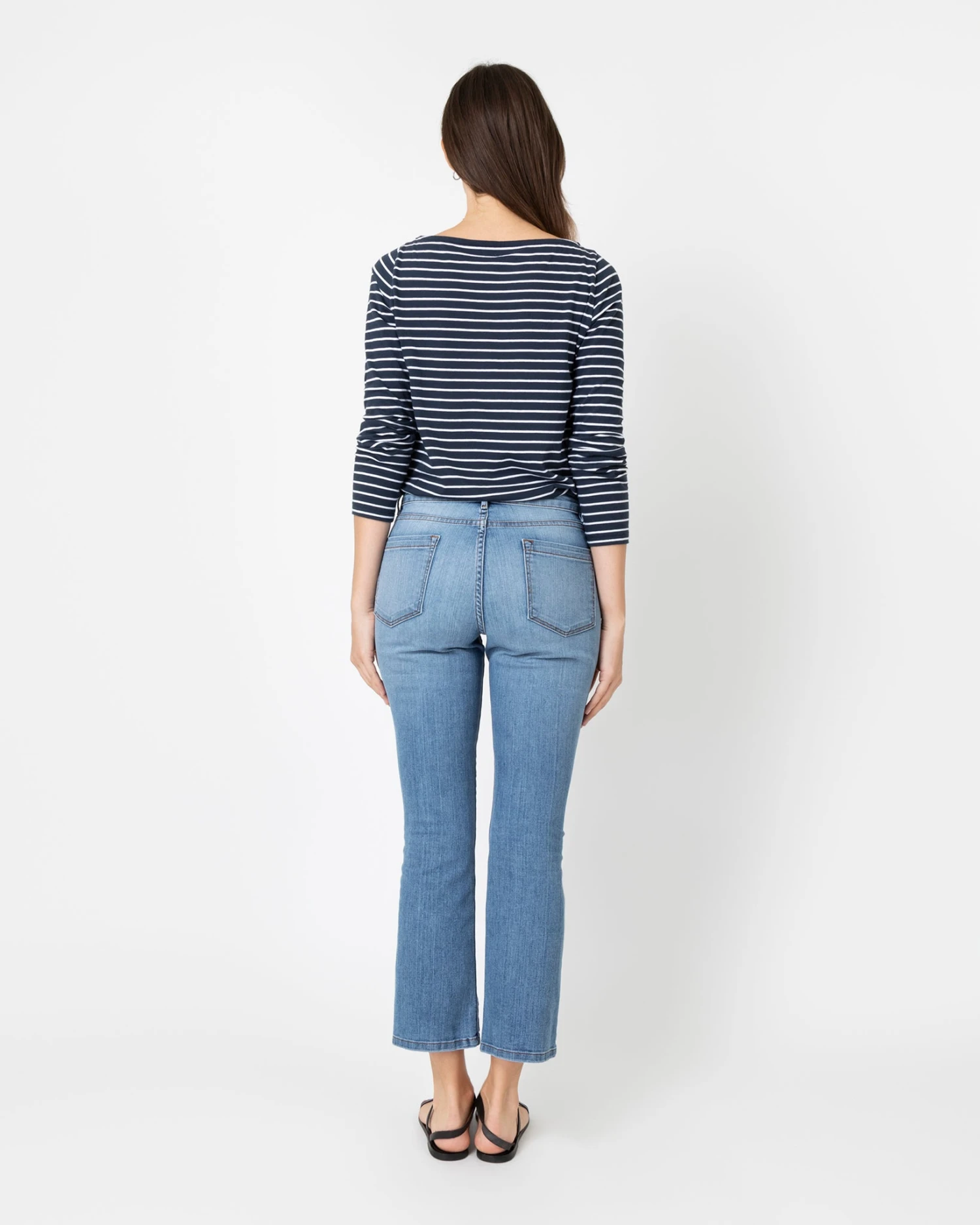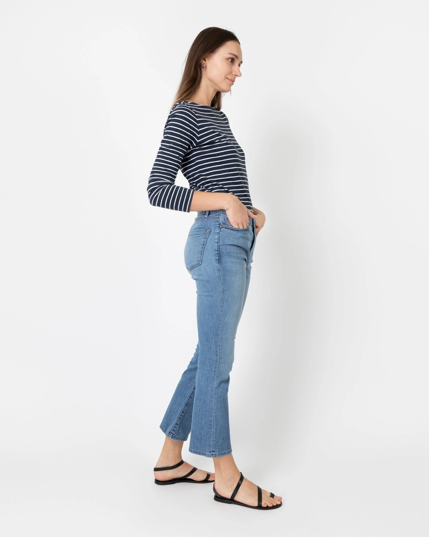 When we first started making jeans, Ann’s favorite cropped flare shape was the second order of business after the classic straight-leg silhouette. No high-tech fabric composition, no fussy back pocket stitching, no magic seam placement… just a classic pair of jeans that makes you look like a better, more pulled-together version of yourself. Each pair is made in Los Angeles (just like our men’s jeans) out of stretch Cone Mills denim in a perfectly faded, seven-years-worn-in shade of blue.