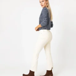 Flare Cropped 5-Pocket Pant In Ivory Stretch Cord