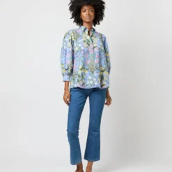 Geraldine Popover Shirt In Blue Multi Angela’s Garden Habotai