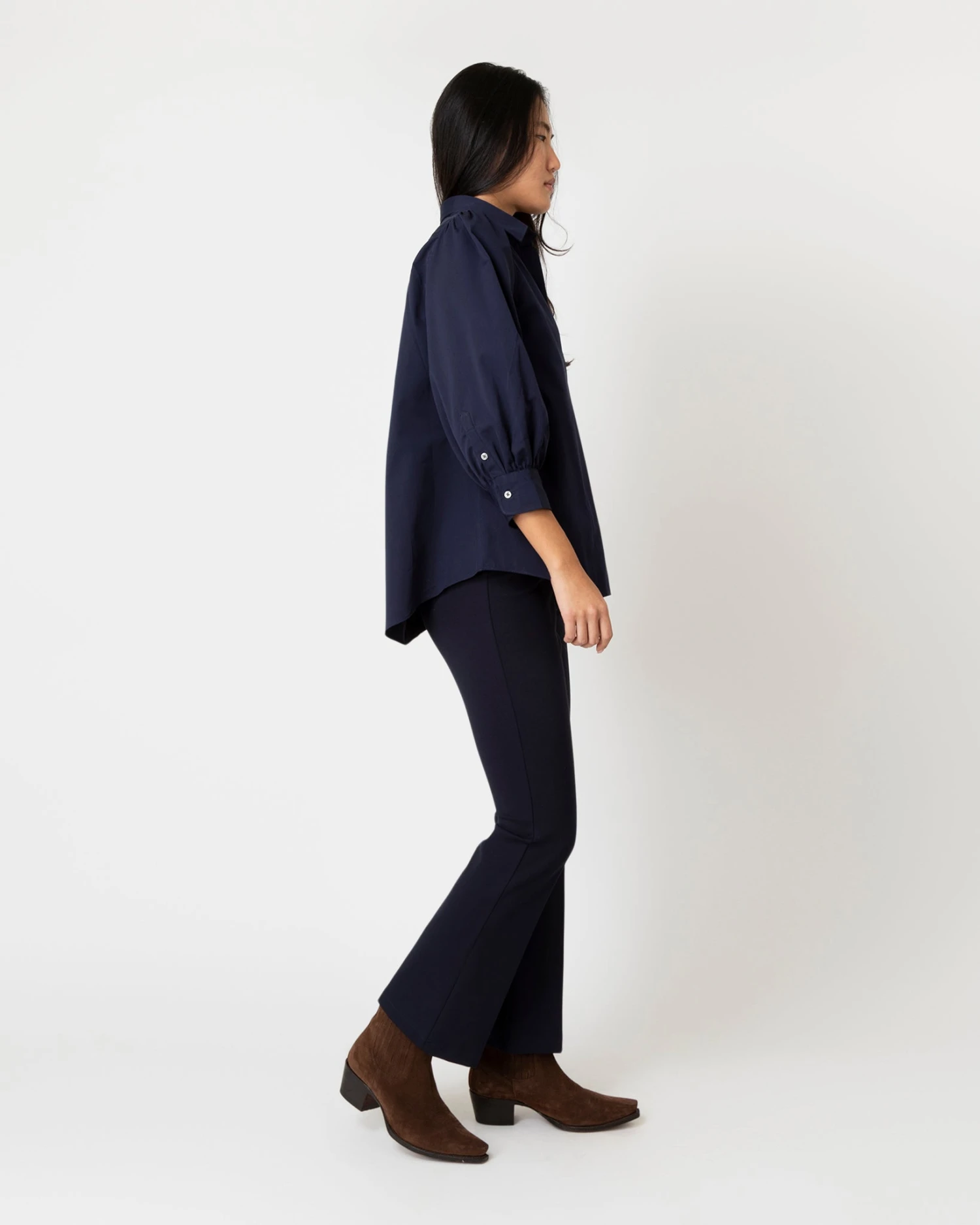 Geraldine is our latest favorite in the “romantic, puff-sleeved shirts” category. This one’s different, we promise! And already a hit. The sleeve hits higher on the shoulder than the Anaya or the Paulina and has more gathers at the top, which means it’s a more flattering way to do the volume trend for those with a broader build. It’s also got a covered popover placket and a rounded, high-low hem. This one’s made of crisp, silky 2ply Italian poplin and almost certain to be one of the more feminine shirts in your closet.