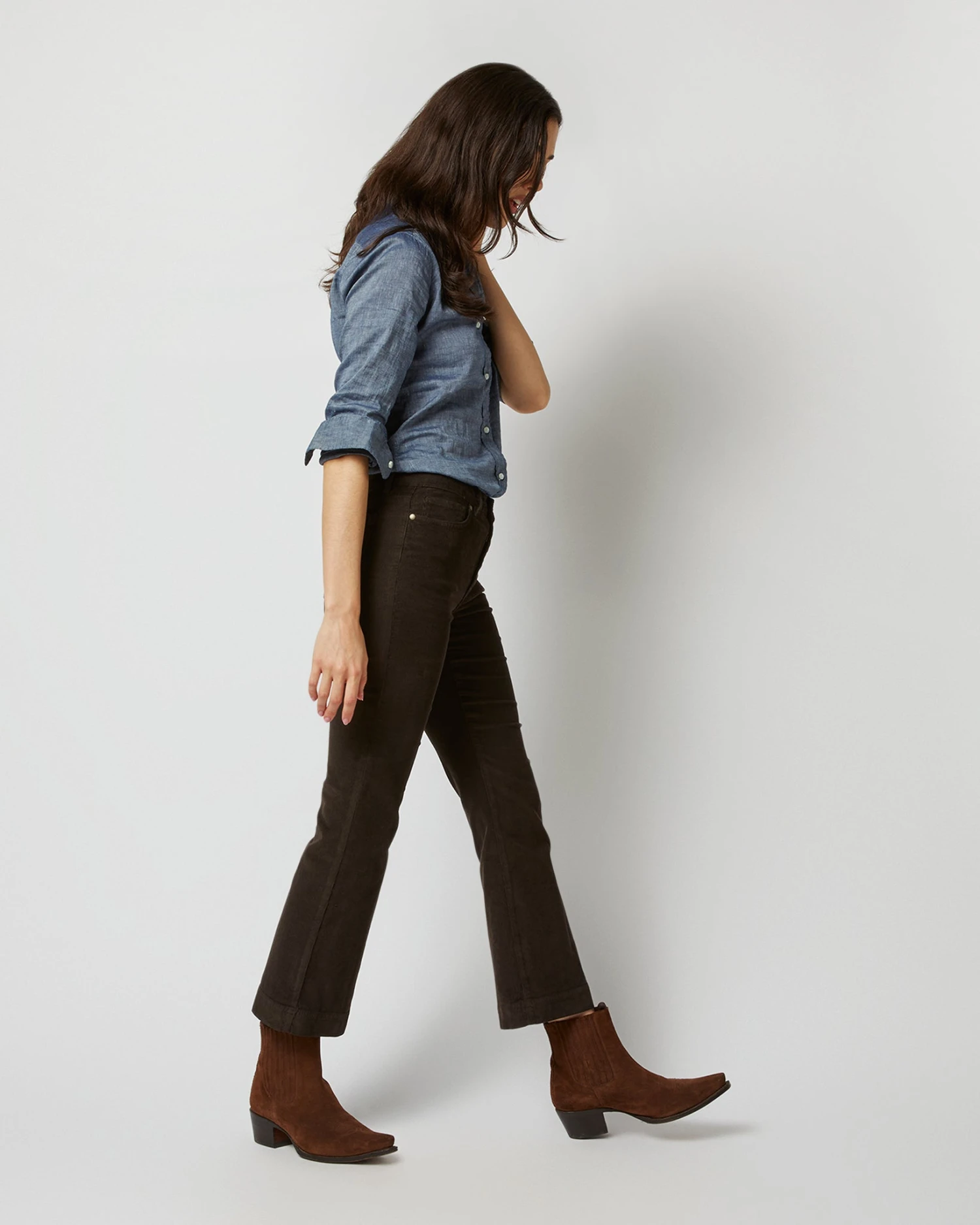 The Kendall is a variation on our cropped flare silhouette — compared to the original, it’s got a higher rise and a looser, easier fit, plus an only-slightly-cropped leg. Each pair is made and garment-dyed in Italy… and in lush, stretch corduroy, perfect for fall.
