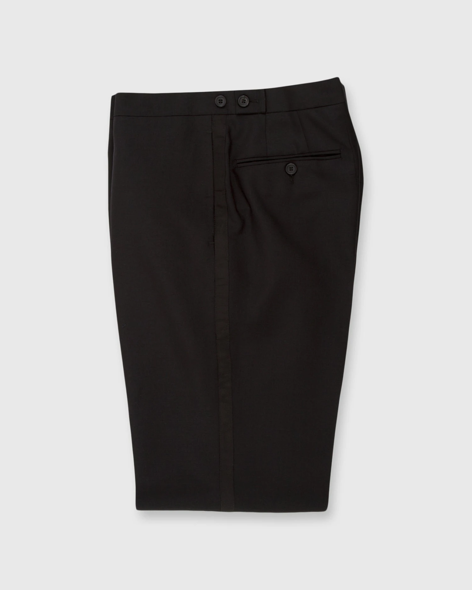 This tuxedo is the black-tie and peak-lapel version of our classic Kincaid No. 3 suit. The jacket has full canvas construction — the sine qua non of tailoring — with a special, structured 3-layer canvas that’ll mold and meld to your body over time, a natural shoulder, a single-button front, peak lapels trimmed in silk grosgrain, side vents, and a shorter, darted body. Style-wise, it leans a little more Italian than the Virgil or the Landry. The trousers are, as usual, cut on the slimmer side with a matching grosgrain stripe down the side and side adjuster tabs at the waist for the perfect fit. It’s made of a really beautiful wool mohair from England that sets it apart from all the ghosts of rentals past… the kind of tux you’ll get excited about wearing. And just like all of our tailored clothing, it’s designed to take you to black-tie events in Mississippi, Manhattan, and Milan without looking or feeling out of place.