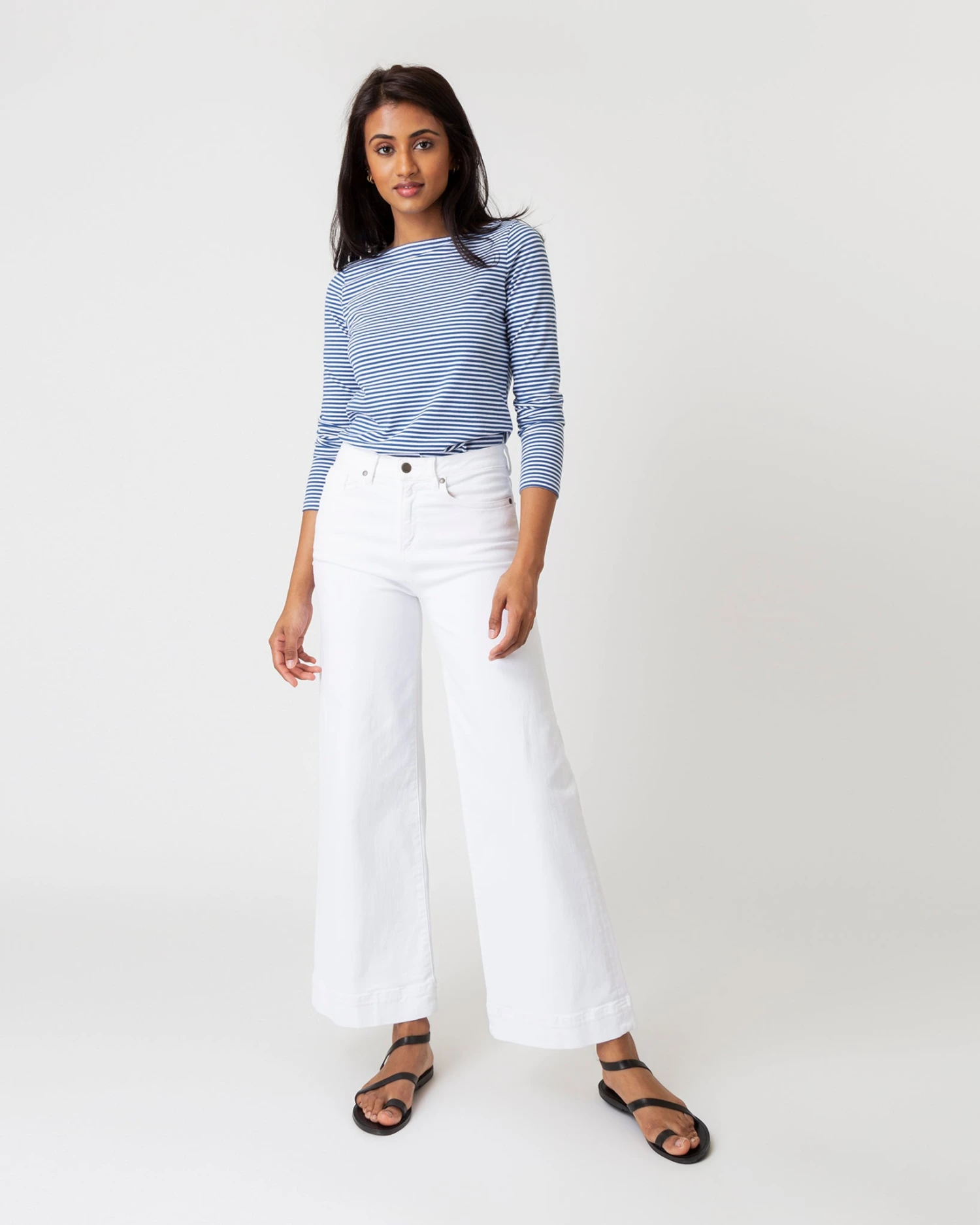 Long-Sleeved Boatneck Tee In French Blue/White Stripe Jersey