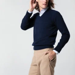 This is a more streamlined version of our classic flat-front dress trouser, still cut on the slimmer side, but with elasticized tabs at the sides instead of belt loops. (There’s a trademarked term for this that rhymes with “tax” — you know the one — but the most important thing to know is that you don’t need to wear a belt. One less thing to worry about.) This pair is made of Italian stretch flannel with horn buttons, on-seam pockets, end-on-end pocketing, a split-back waist with our signature green bartack, and a 37.5″ unfinished inseam that’s ready to tailor to your perfect length.