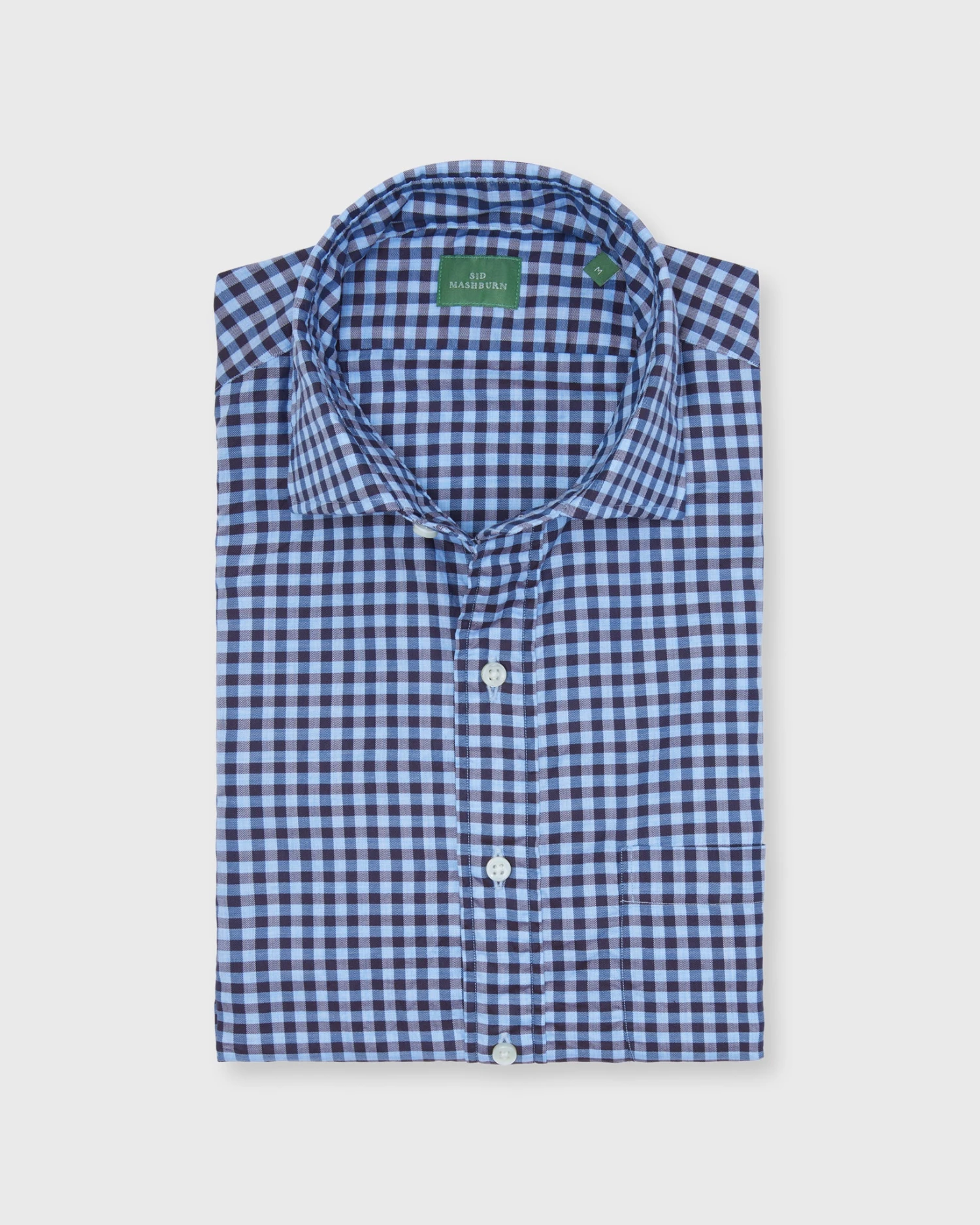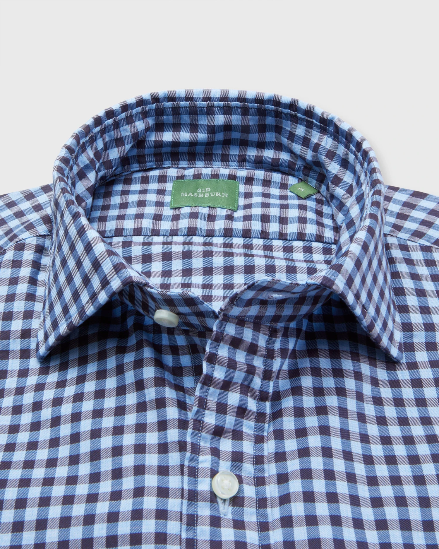 Spread Collar Sport Shirt In Brown/Sky Gingham Twill