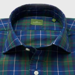 Spread Collar Sport Shirt In Green/Blue/Yellow Plaid Poplin