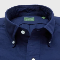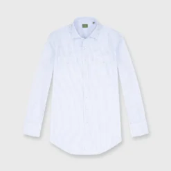 A very good warm-weather sport shirt, made of crisp Italian poplin and garment-dyed to a super faded shade of blue. It’s got a modified spread collar with lightweight, nonfused interlining for a soft, relaxed look. As always, the cut is slim but never skinny, with a high armhole for mobility and a long-enough-to-stay-tucked-in shirttail. (Sid likes it this way, but you can always get it shortened.) It’s made with single-needle stitching, 22 stitches/inch, flat-felled seams, and thick, 3.5mm Trocas shell buttons.