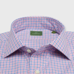 Spread Collar Sport Shirt In Pink/Dutch Blue Tattersall Poplin