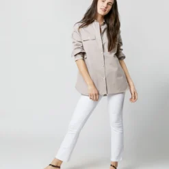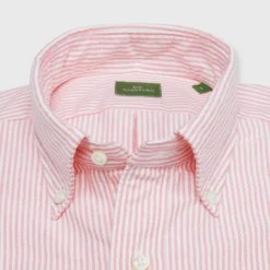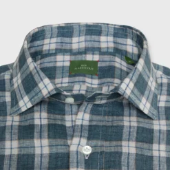 A very good warm-weather sport shirt. It’s got a modified spread collar with lightweight, nonfused interlining for a soft, relaxed look. As always, the cut is slim but never skinny, with a high armhole for mobility and a long-enough-to-stay-tucked-in shirttail. (Sid likes it this way, but you can always get it shortened.) It’s made with single-needle stitching, 22 stitches/inch, flat-felled seams, and thick, 3.5mm Trocas shell buttons.