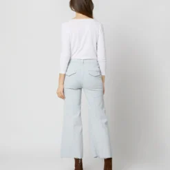 LA-based MOTHER makes the softest, stretchiest jeans around — and they all have clever, memorable names to boot. The Swooner Roller is an in-store favorite frayed wide-leg crop, with a flattering high rise and retro-feeling back slit pockets. This version’s made up in a super-light blue twill with, as promised, plenty of stretch to it.