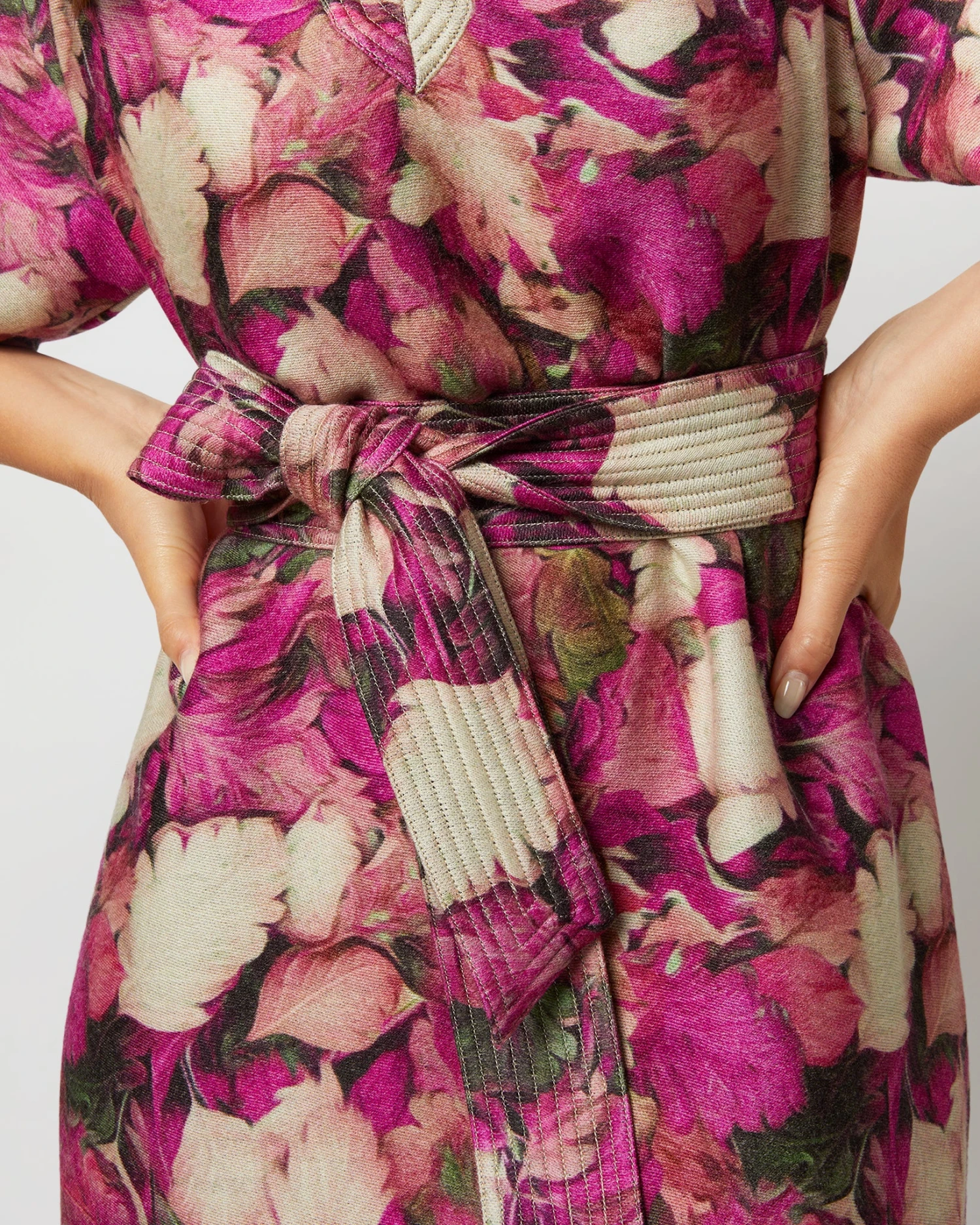 There’s a reason we’ve been running this dress shape for the last ten years. Blouson sleeves, trapunto stitching, a wide sash to cinch as tight as you want… it’s the best. This one is made from a luxe Venetian wool from Italy printed with a beautiful winter floral. It feels amazing to the touch.