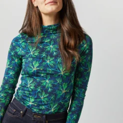 In-store favorite Ulla Johnson makes feminine, bohemian pieces that are heavy on handcraft and special details. This is a slim, slinky turtleneck made from lightweight tricot fabric with a romantic floral print. Layer under a dress or wear it on its own with jeans.