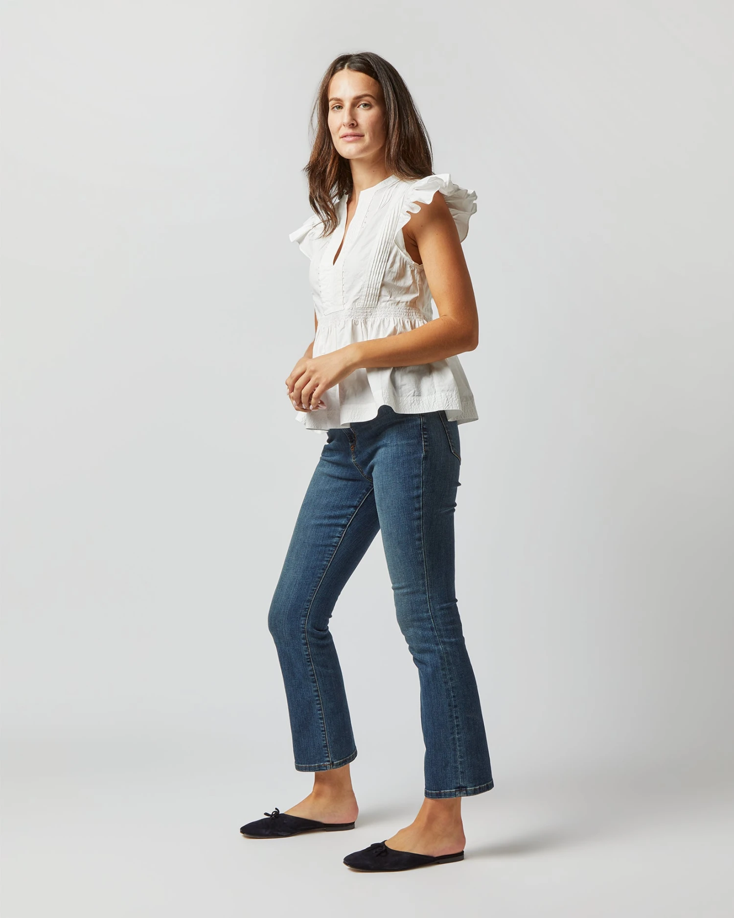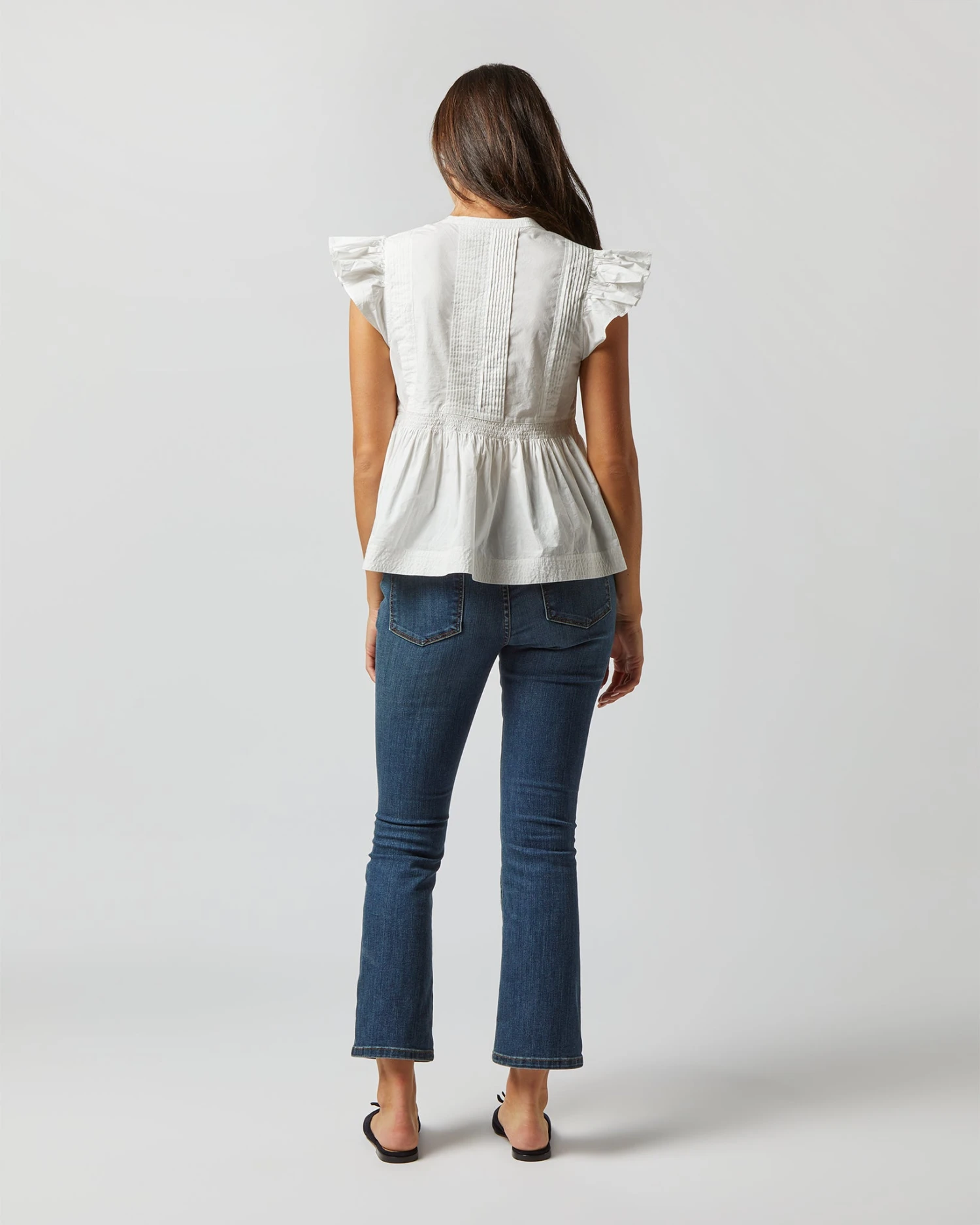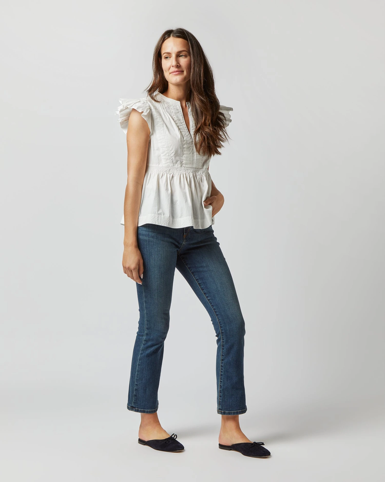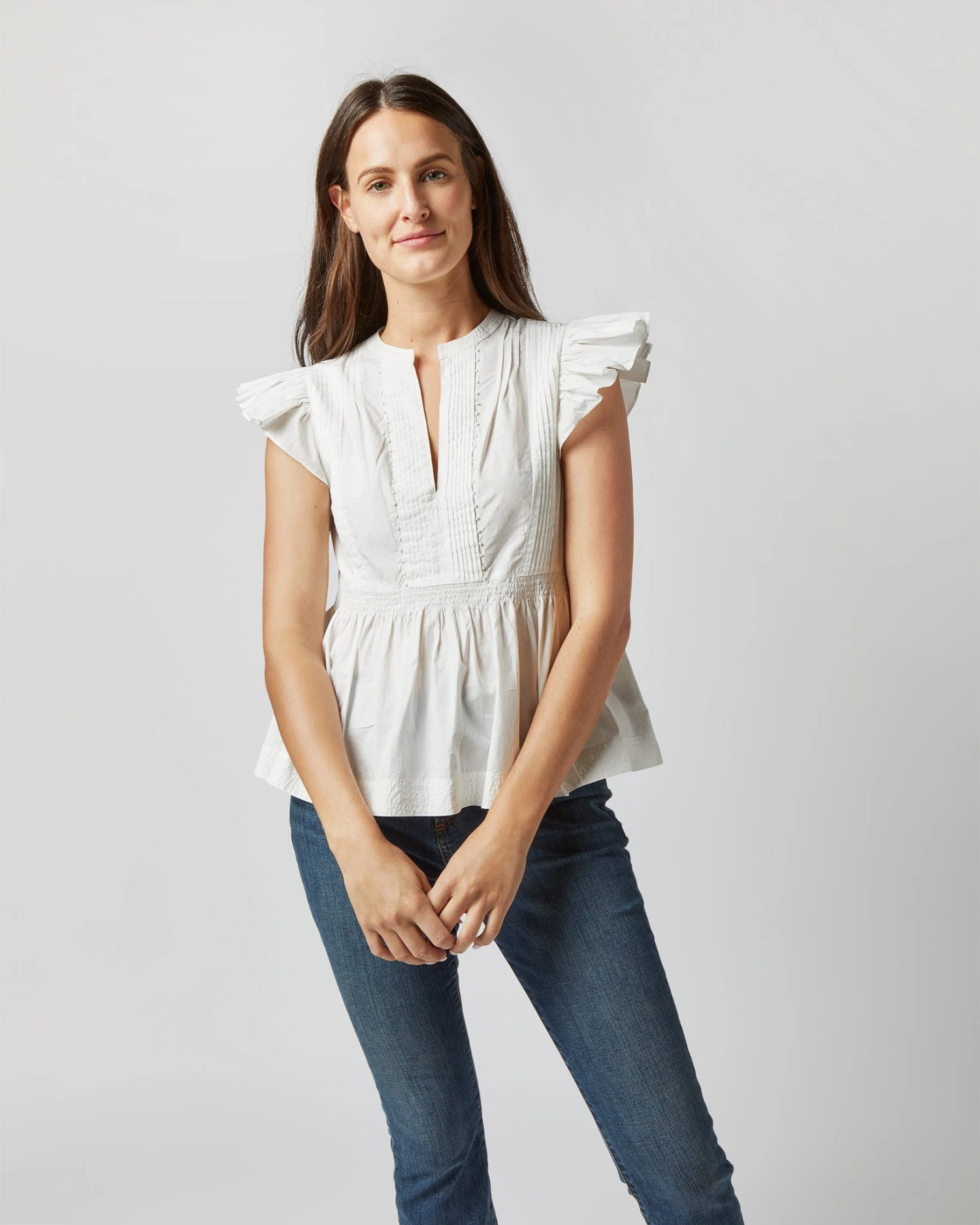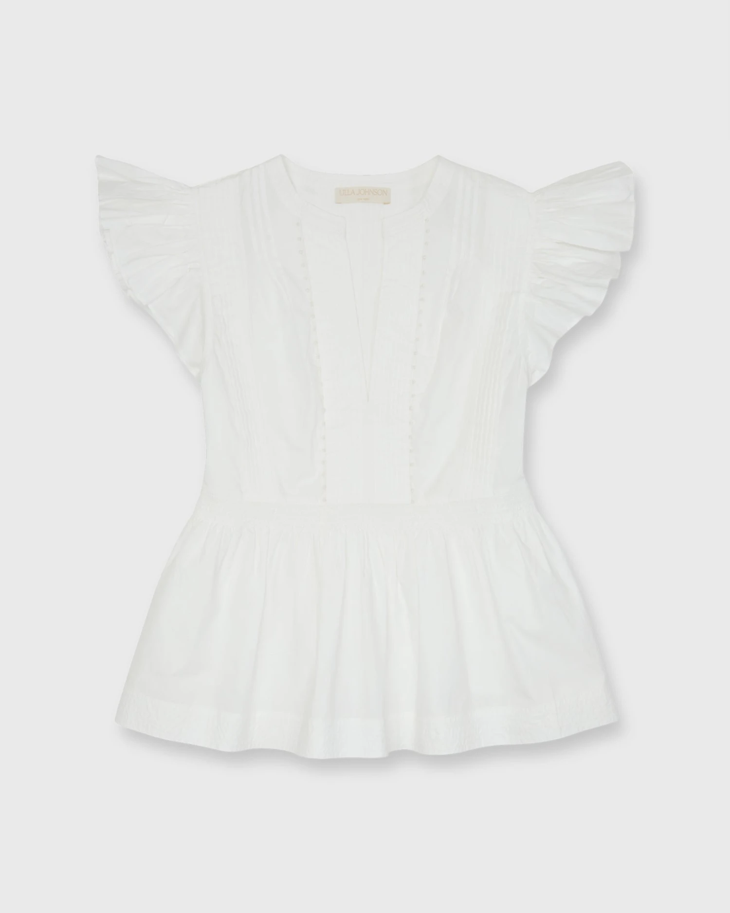 In-store favorite Ulla Johnson makes feminine, bohemian pieces that are heavy on handcraft and special details. And accordingly, the Luise shape checks all the boxes when it comes to femininity: short ruffled sleeves, a deep V neckline with pintucking details, hand-embroidered cotton poplin… you get the idea.