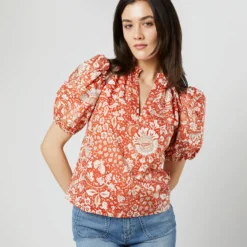 In-store favorite Ulla Johnson makes feminine, bohemian pieces that are heavy on handcraft and special details. The Olina dress is a classically UJ shape with architectural puff sleeves, an elastic waist with a drawstring tie, and a full, tiered skirt. This one is made of crisp cotton poplin printed with a romantic, trailing lotus floral.
