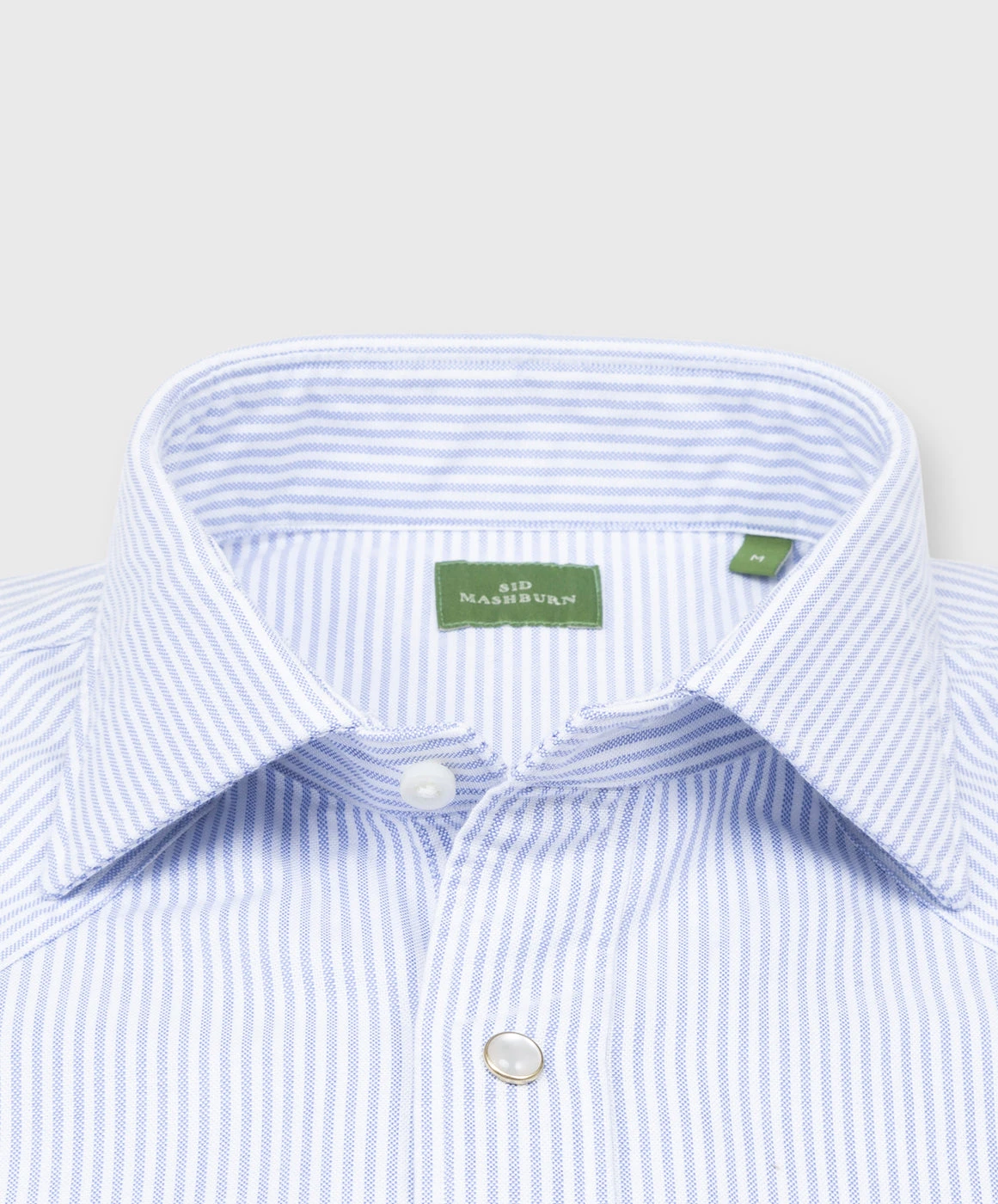 A rugged, just-Western-enough riff on a classic OCBD. Sid’s been wearing this shirt for ten years and counting… we love the contrast of a university stripe with pearl snaps. Unexpected in a good way. There’s also a pointed yoke, double pockets, a triple-snap cuff, and a shorter length designed to wear untucked. (Plus the same single-needle stitching, 22 stitches/inch, and flat-felled seams of all of our shirts.)